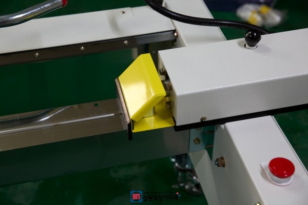 제함기의 버튼을 누르면 푸쉬버튼이 작동해서 박스를 밀어주게 됩니다.
