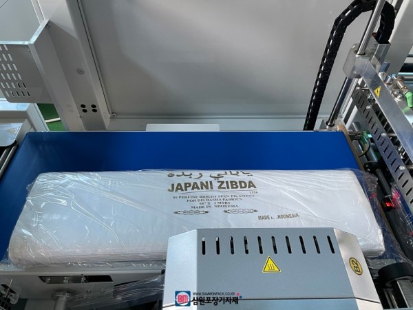 해외공장에서 제작된 고급 원단의 포장의뢰가 있어서 사이드실러로 수축포장을 해보았습니다