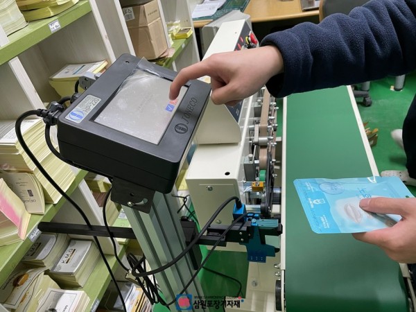 비닐파우치가 밴드실러에서 실링이된후 잉크젯 마킹기를 통해 날인까지 되며