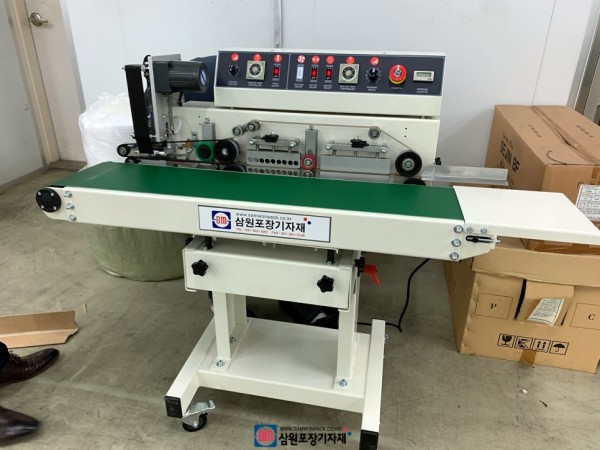 실링된 파우치는 리본타입의 날인기에서 인쇄가 되며
