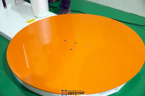 랩핑기의 턴테이블은 기본 1500사이즈이며 랩핑기헤드와의 거리가 있기 때문에 이보다 큰 파렛트도 문제없이 랩포장이 가능합니다
