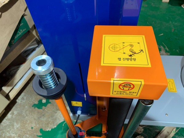 기계용랩(스트레치필름)을 설치후 상단 스프링 마개로 텐션을 조절해서 랩포장을 할수 있습니다.