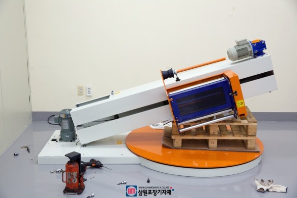 랩핑기와 경사판을 함께 설치한 모습