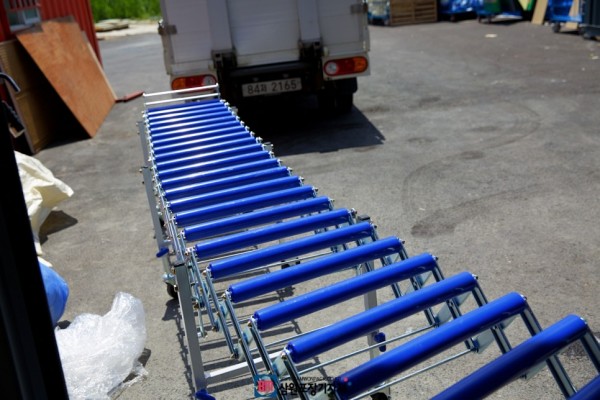 박스포장후 포장된 박스가 화물차에 바로 옮길수 있도록 자바라를 공장 밖 화물차로 연결시켰습니다