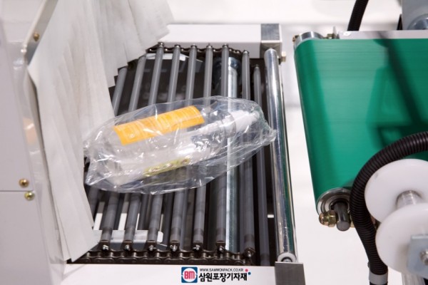 엘실러에서 수축필름으로 제품을 실링해서 자동수축터널로 이동시키면
