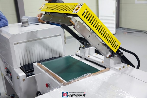 반자동수축포장기는 작업자가 엘실러 작동을 해주면 나머지 과정을 자동으로 해주는 수축포장기로