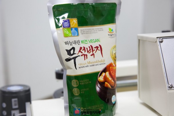 김치, 깍두기 같은 제품은 두꺼운 파우치를 사용해서 실링이 잘되는것은 물론 배송, 유통과정중에 터지거나 파손되지 않는게 매우 중요하답니다.