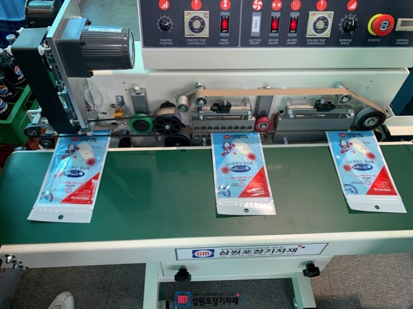 마스크등의 낱개 포장을 위해 사용되는 비닐파우치, 지퍼백을 실링하면서 동시에 날인까지 해주는 밴드실러는