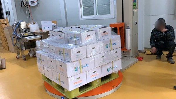 여러개의 박스를 파렛트위에 올려서 자동포장을 하게 되는데