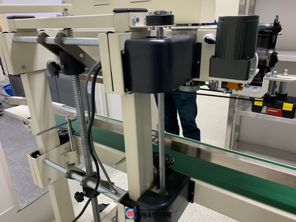 컨베어가 이동하면서 앞뒤로 가이드바를 통해 파우치를 지탱해줄수 있으며 컨베어, 헤드의 높낮이 조절이 가능합니다