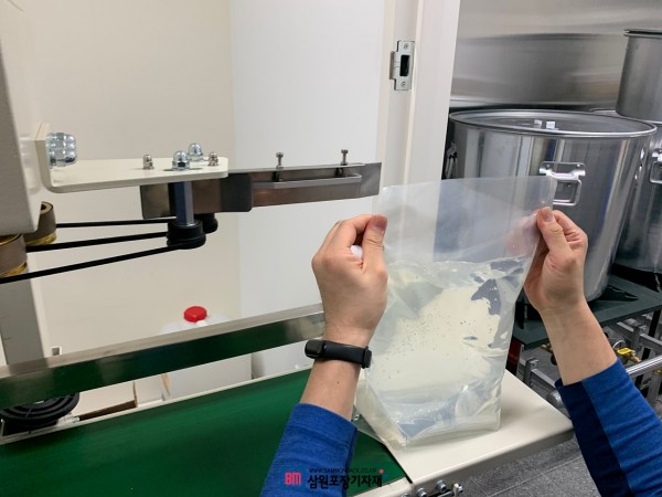스파우트파우치, 액상파우치 실링은 수직형밴드실러로(제주산방푸드)