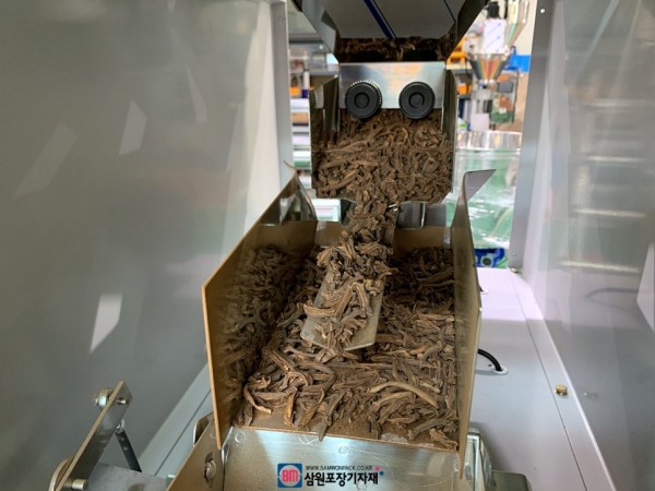 삼원포장은 곤드레, 고사리등 건조 나물을 위한 자동계량기도 납품경력이 있었기 때문에 고객으로 부터 작두콩 샘플을 받아 그에 맞는 자동계량기도 제작을 해드렸습니다.