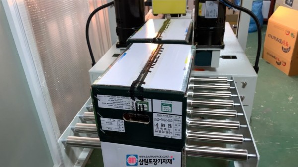 박스를 연속적으로 투입할수 있으니 분당 15개 정도의 박스포장이 가능하며