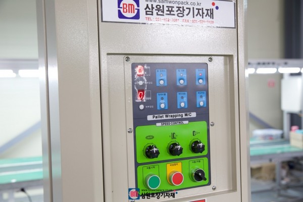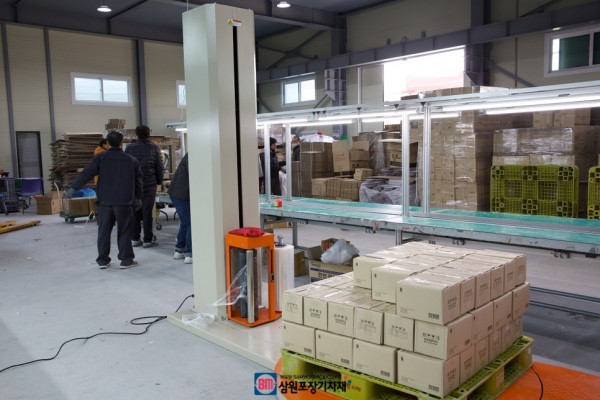 파렛트에 제품을 쌓고 작동시키면 센서에의해 자동 또는 수동으로 랩핑을 해주는 랩포장기계입니다.