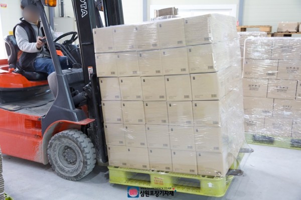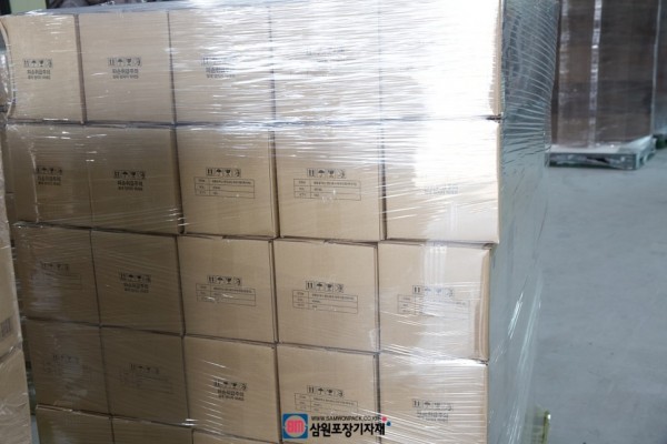 위에가 핸드랩핑으로 포장된 박스이고 아래가 파렛트랩핑기로 랩핑된 박스랍니다.