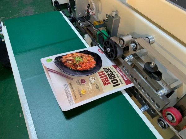 고체잉크(Solid ink)타입과 리본타입의 먹지 타입의 밴드실러 인자기는 파우치에 제조일자, 유통기한, 날짜등의 인쇄를 가능하게 해주며