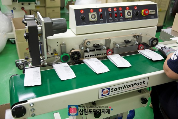 밴드실러는 연속적인 실링작업이 가능한 실링기로 필요에 따라 날짜 날인도 가능합니다.
