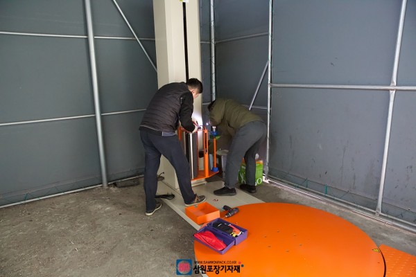 랩핑기중에 접을수 있는 모델로 설치를 해드렸는데요 랩핑기의 기둥이 2미터가 넘기 때문에
