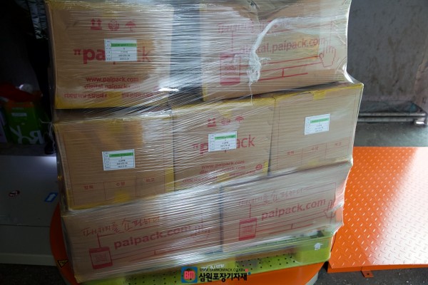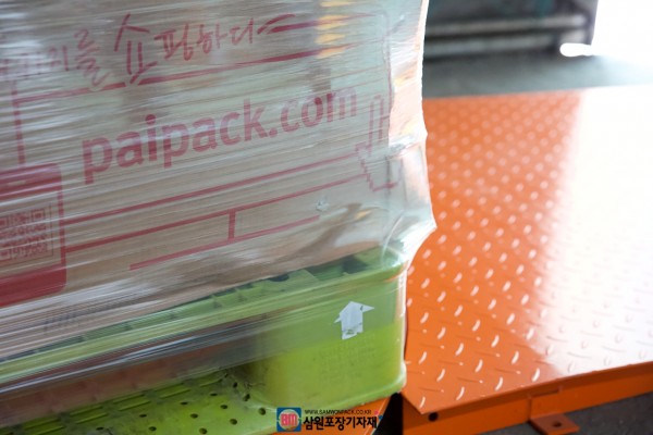 랩핑기는 파렛트의 제품뿐 아니라 파렛트를 함께 랩핑해주기 때문에 이렇게 제품과 파렛트를 고정해주는 효과가 있답니다.