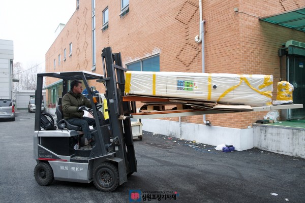 사이드탭핑기 설치때 봤지만 신규공장에 랩핑기 설치할 장소엔 지게차가 진입할수 없었기 때문에 핸드자키, 핸드리프트를 사용한 랩포장이 가능하도록