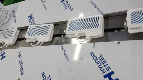 삼면포장이 된 제품은 컨베어를 통해 배출되게 됩니다.