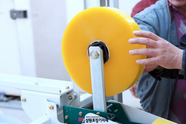 박스의 폭, 높이에 따른 사이즈조절을 핸들로 하는 반자동탭핑기는 삼원포장에서 매주같이 출고될정도로 인기가 많은 포장기계로