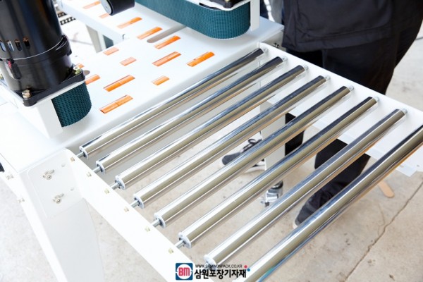 이렇게 탭핑기 사용은 자바라나 컨베어와 함께 사용하시면 박스를 들지 않고 반자동 포장라인을 구성할수 있습니다.