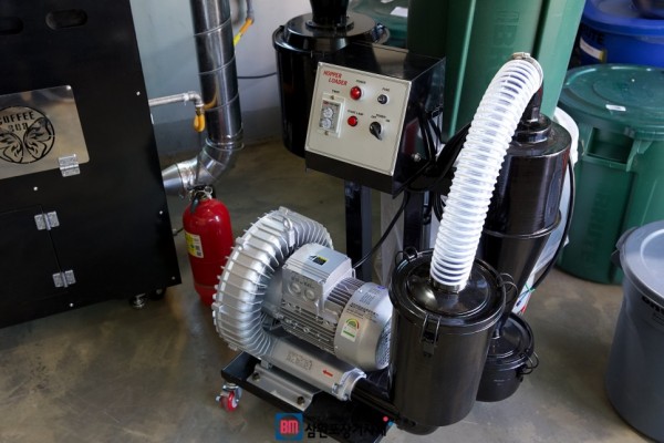 로스팅기계와 자동계량기를 위한 2개의 5마력 진공이송기(호퍼로더)를 설치했는데요