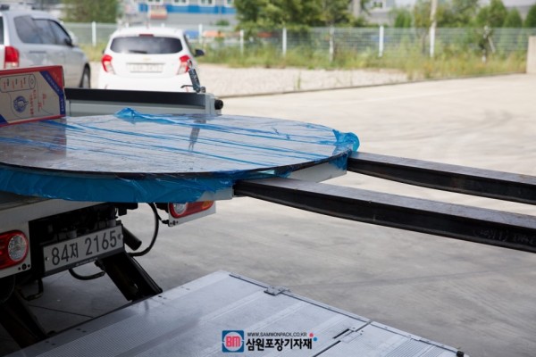 랩핑기의 턴테이블과 헤드쪽엔 지게차 홈이 있어서 이동시엔 지게차를 통해 쉽게 옮길수가 있습니다