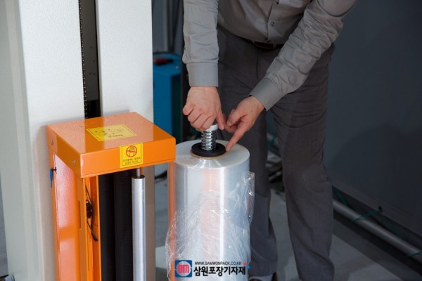 기계용랩(스트레치필름)을 장착하고 상부 스프링을 통해 텐션조절을 할수 있습니다.