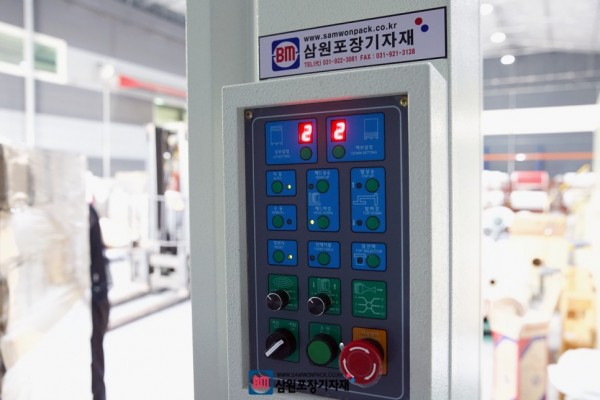 랩핑기의 좌우 교체설치가 가능한 PLC콘트롤패널은 상부,하부 감김을 0~9회까지 조절해서 자동으로 랩핑을 진행해주며