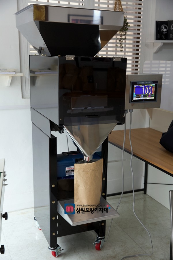 원두를 로스팅후 소분하기 위해서 자동계량기를 사용하시는데요