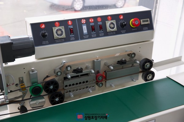 실링과, 날인을 독립적으로 조절 할수 있으며 컨베어 높이, 폭, 조절이 가능하며 틸팅기능으로 앞으로 기울여서 작업할수도 있습니다.