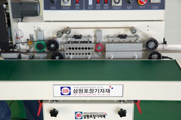 작고, 큰 파우치까지 컨베어의 폭을 조절해서 실링기 가능하며 작업이 익숙해지면 연속적으로 파우치를 투입해서 실링할수 있기 때문에 대량작업에도 유리한 밴드실러입니다.