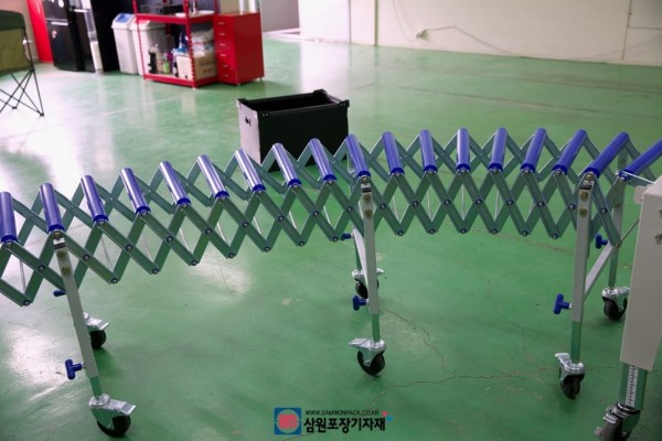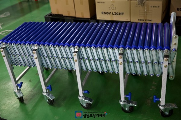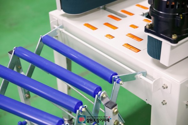 탭핑기와 작업대 사이에 이렇게 보조컨베어를 달아서 박스의 부드러운 이동이 가능하게 할수 있습니다.