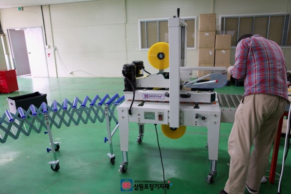 자동화포장을 위해 비싼금액을 안들여도 이렇게 탭핑기와 자바라면 박스포장은 해결입니다.