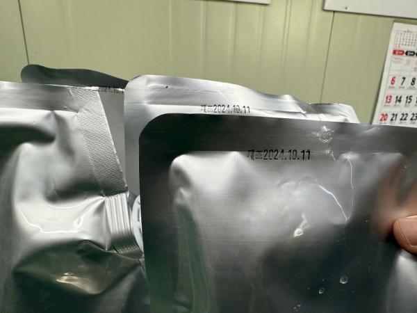 날인은 리본타입 날인기로 제조일자 소비기한 유통기한 등의 글자와 날짜를 변경해서 날인가능합니다.