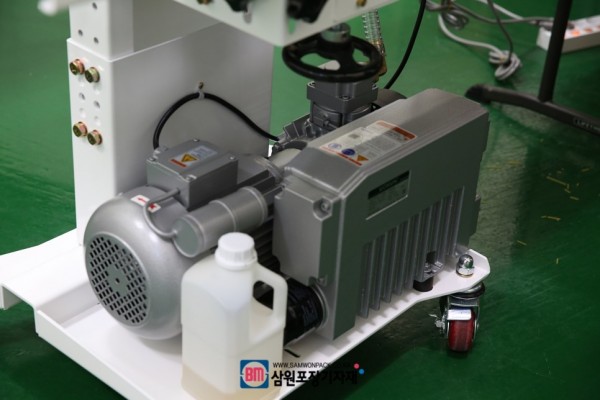 상단은 밴드실러(실링기)와 동일한 외관이지만 하단에 진공펌프가 달려있으며 스탠드 일체형으로 원하시는 장소로 이동하며 작업이 가능합니다.