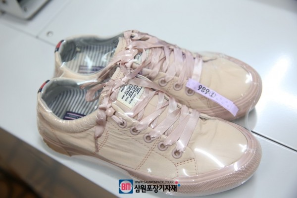 디스펜서, 용기, 박스, 신발등 제품의 모양에 상관없이 포장이 가능한게 수축포장의 장점입니다.