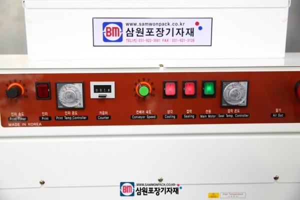 실링바의 접착온도, 컨베어속도, 인자기의 온도 및 인자속도(인쇄위치)를 조절할수 있습니다.
