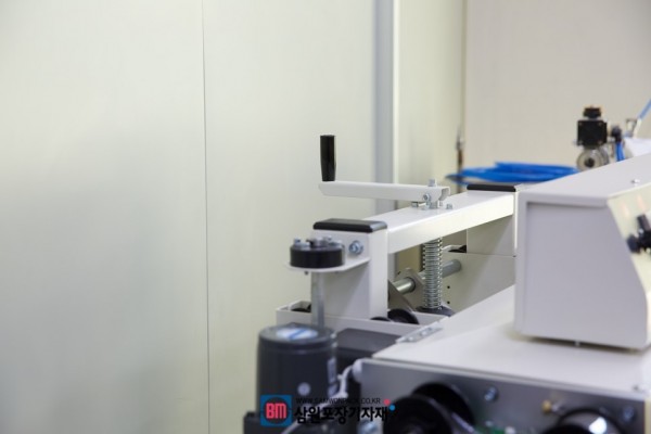 상부에 장착된 핸들로 컨베어, 실링헤드를 동시, 각각 높이조절을 할수가 있습니다.