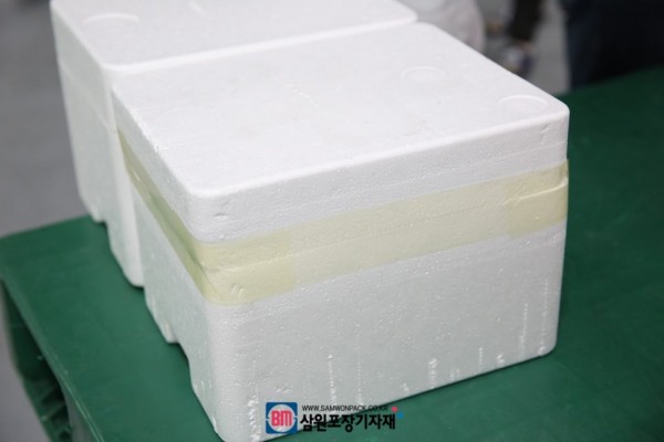 이런 냉장, 냉동제품 포장에 필수인 아이스박스(스티로폼박스)를 테이핑은 박스의 특성상 뚜껑과 박스를 포장할때 박스의 옆면(사이드)을 테이핑해야한답니다