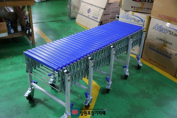박스포장후 배출된 박스는 자연스럽게 자바라를 타고 이동하게 되며