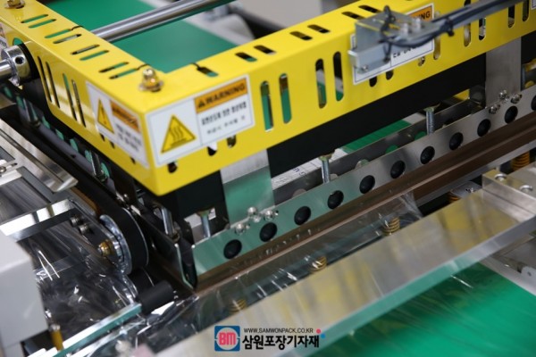 자동수축포장기는 수축필름 공급도 자동으로 이루어지며 수축필름에 8개의 타공을 추가할수도 있습니다.