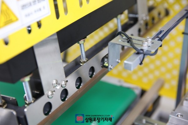 수직, 수평 두개의 위치에 있는 센서는 제품의 진입을 인식해서 설정한 길이로 수축필름을 제품에 씌워주며 제품이 투명재질일 경우 센서가 인식하지 못할수도 있기 때문에 진입후 시간(타임)으로 설정해서 컷팅할수도 있습니다