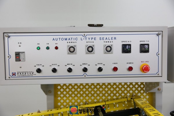 자동수축포장기의 자동엘실러(L Sealer)는 컨베어에 진입한 제품을 자동으로 인식해 수축필름으로 실링해주고 분당 25개정도의 속도로 터널로 제품을 이송시킵니다.