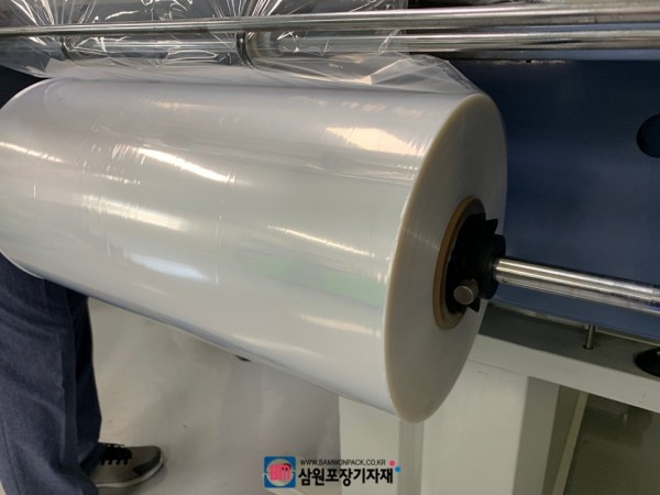 열수축필름을 챔버형수축포장기에 걸고 작업을 해보았습니다