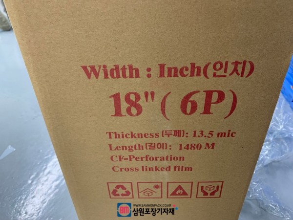 수축필름은 18인치로 길이와 두께가 박스에 표기되어 있습니다.