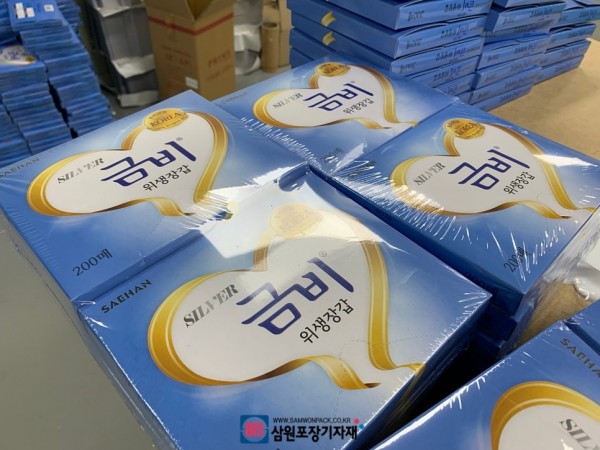 오늘 설치한 업체는 비닐봉투, 장갑등을 제작하는 업체로 삼원포장 본사에 재고가 있던 중고수축포장기를 테스트해보시고 구입해주셨는데요