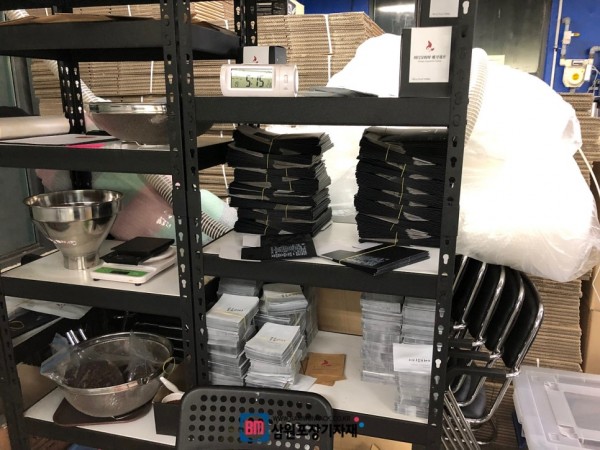 포장을 기다리는 파우치들.